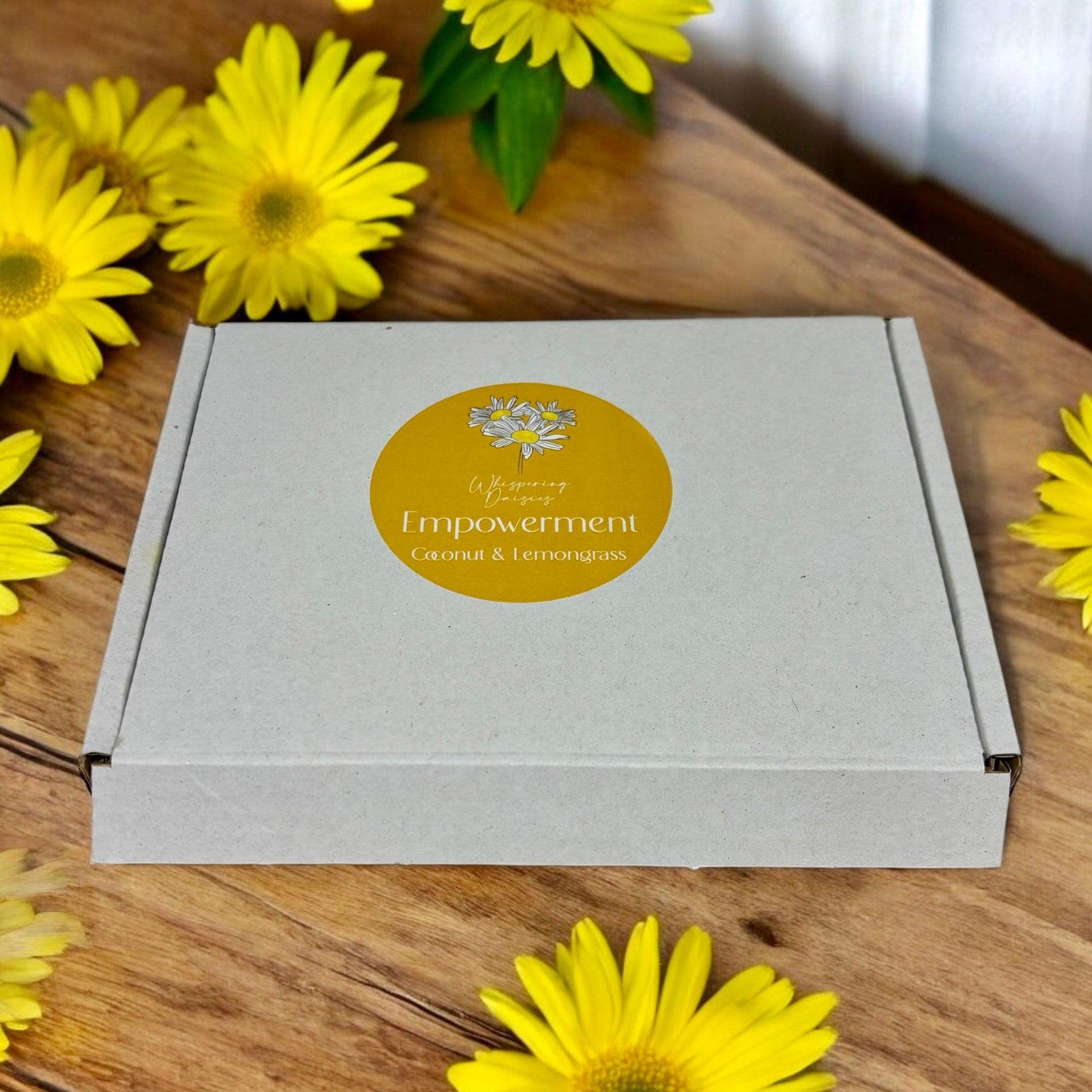 Empower your day and uplift your home with the Empowerment Daisy-Shaped Wax Melt Box from Whispering Daisies. Each box contains five beautifully handcrafted daisy-shaped wax melts, carefully wrapped in crisp white paper, making them a perfect gift or a special treat for yourself. The Empowerment scent is designed to inspire confidence, create a positive atmosphere, and surround you with a sense of emotional wellbeing.