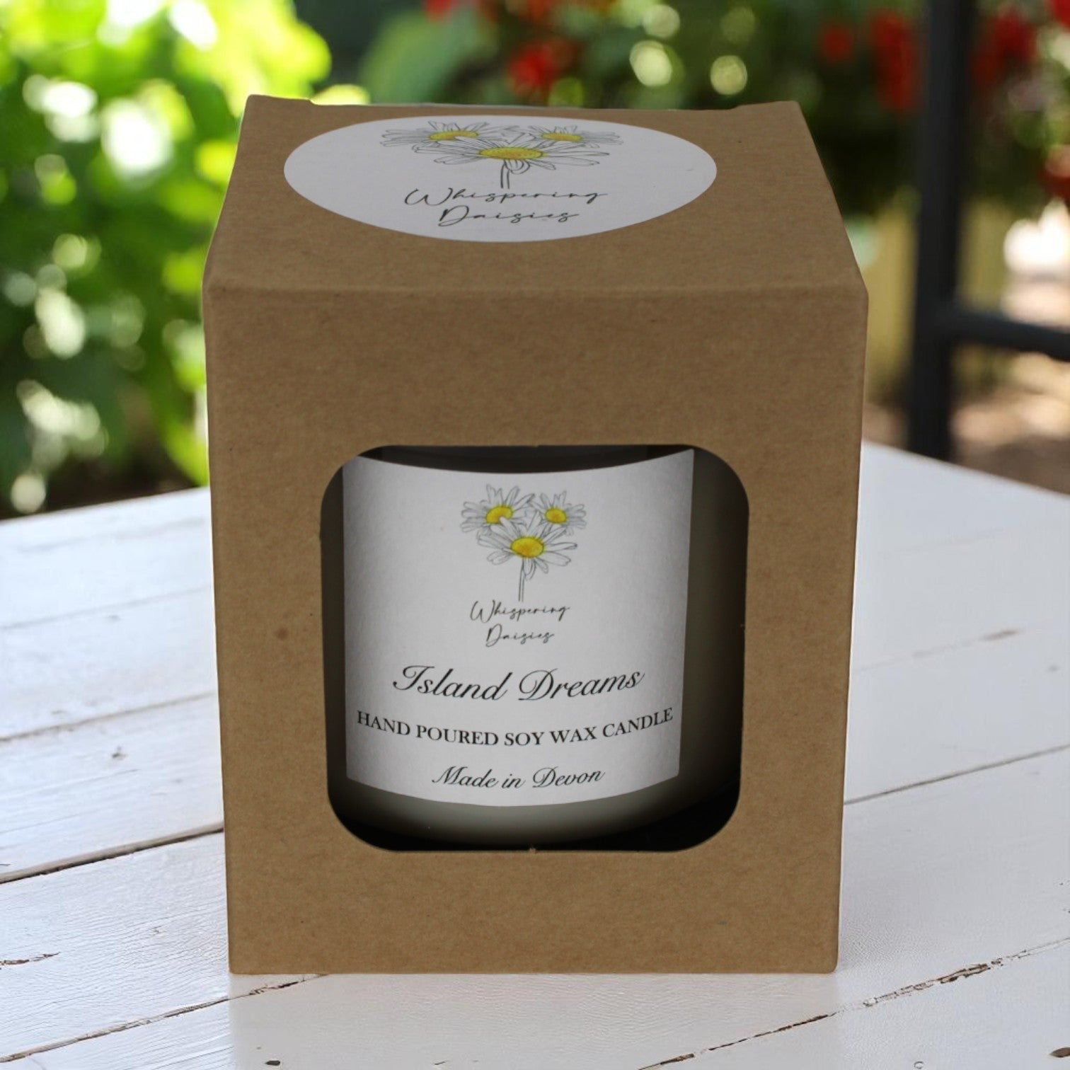 Transport yourself to the coast with the Island Dream Candle from the Whispering Daisies Core Candle Collection. Hand-poured in North Devon and presented in a clear glass jar, this original favourite is topped with a beautiful mix of moss agate, clear quartz, and lapis lazuli crystal chips. Designed to evoke the serenity of the seaside, the Island Dream Candle fills your home with a fresh, uplifting fragrance and gentle crystal energy, making it perfect for moments of relaxation or daydreaming by the sea.