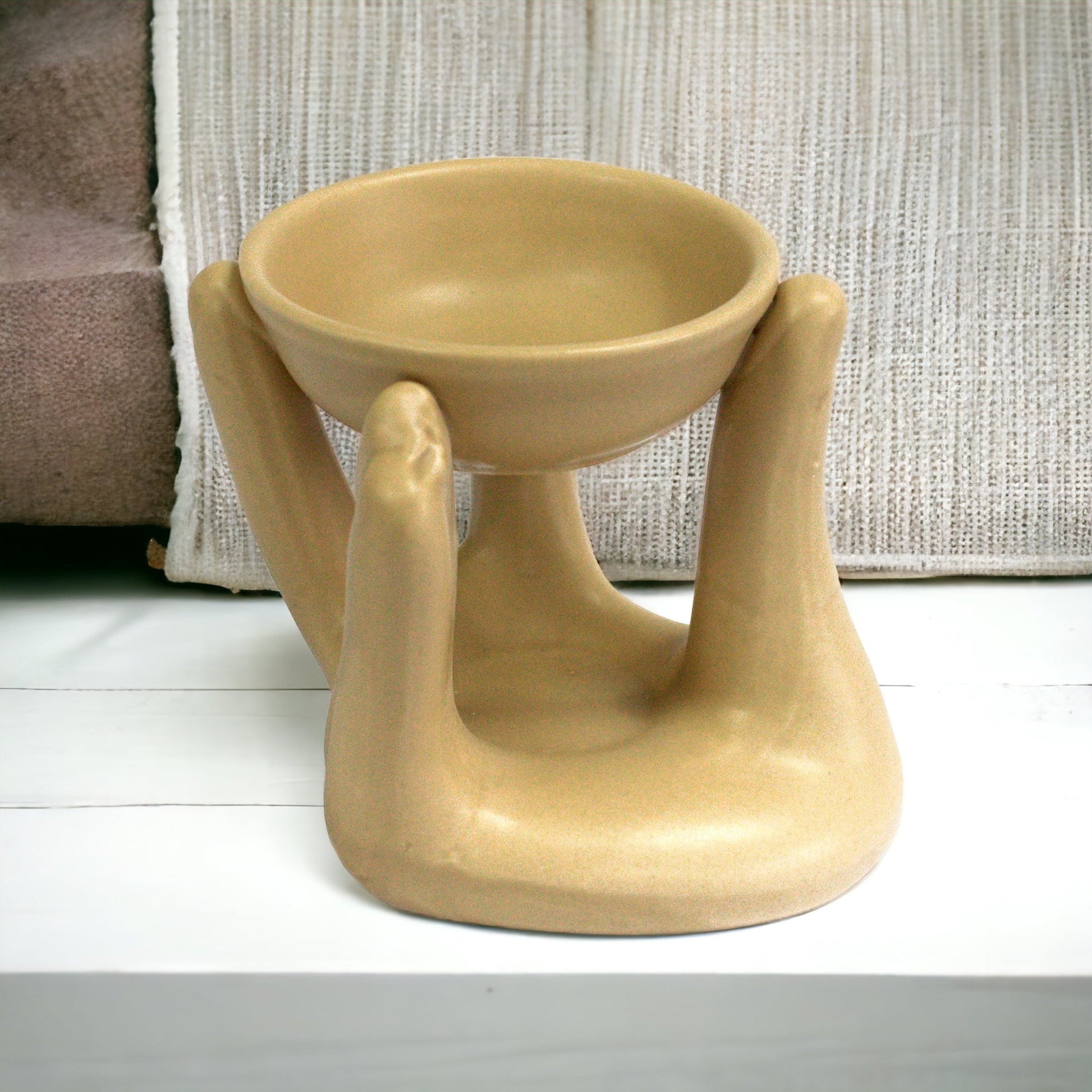 The Tan Hand Wax Burner is a timeless accessory for any home, designed to invite aromas of tranquillity and serenity into your space. Its elegant tan hand design features a generous bowl above, perfect for enjoying your favourite soy wax melts or simmering granules. Simply add a tealight below to fill your room with gentle, soothing fragrance. This burner blends style and function, making it a beautiful addition to any décor.