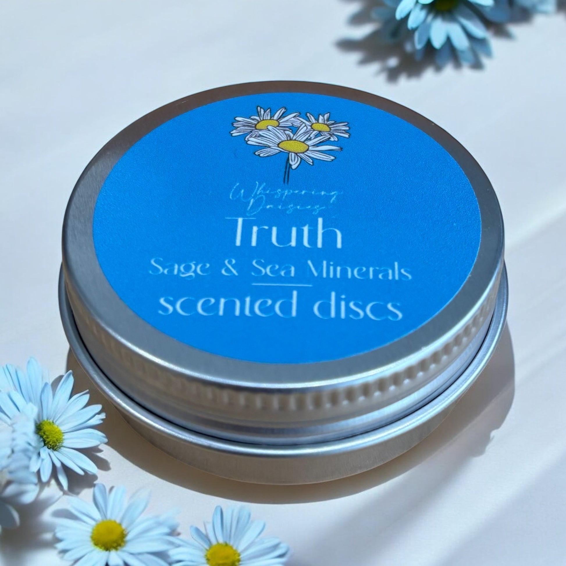 Truth Scented Discs from Whispering Daisies. These versatile fragrance discs are perfect for your car diffuser or hoover filter, filling your space with a vibrant, uplifting aroma every time you drive or clean. Each tin contains 10 beautifully crafted, coloured felt discs, sealed to lock in freshness until you’re ready to enjoy them.
