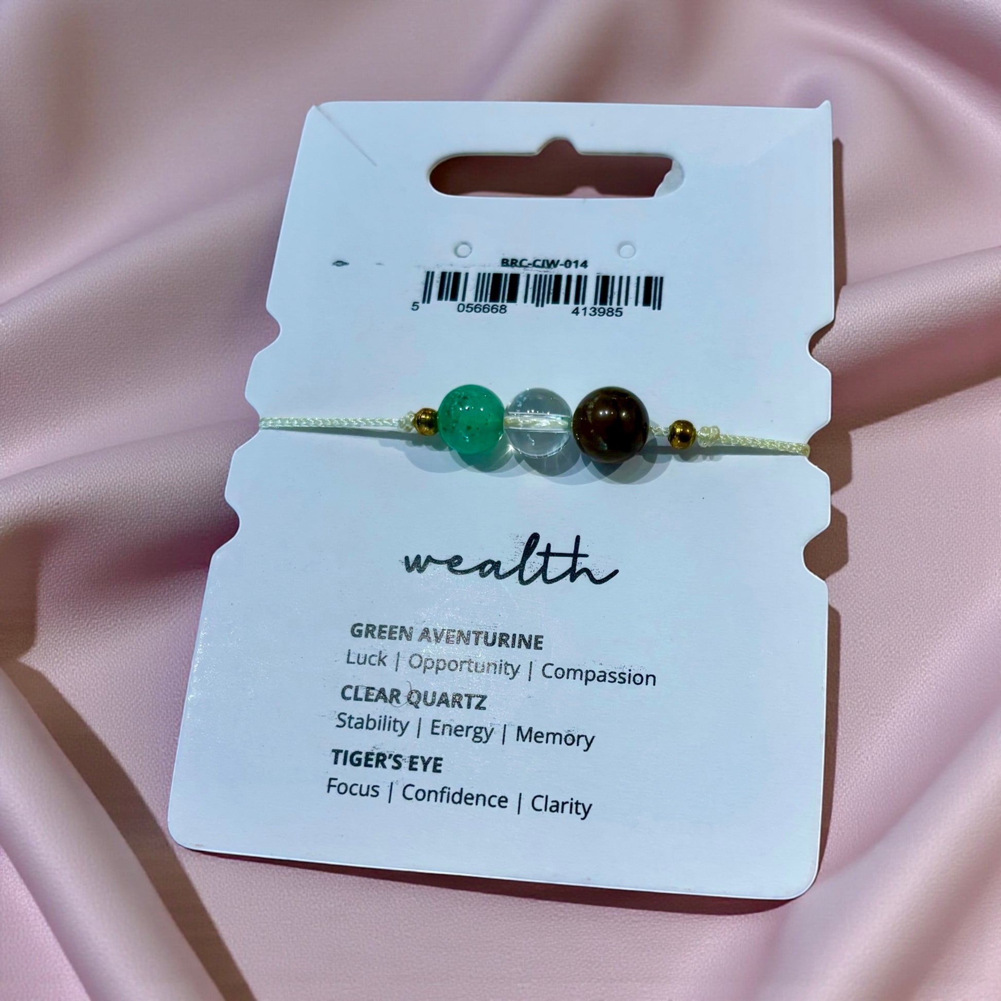 Attract abundance into your life with this powerful three-crystal bracelet. Green Aventurine opens doors to opportunity and good fortune whilst nurturing compassion, Clear Quartz amplifies your intentions and stabilises your energy, and Tiger's Eye sharpens your focus to recognise and seize prosperity when it appears. Wear this cord bracelet as a tangible reminder that wealth flows to those who are ready to receive it.